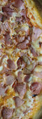 Molho pomodoro artesanal, muçarela, presunto, ovos, cebola, azeitona e orégano.
